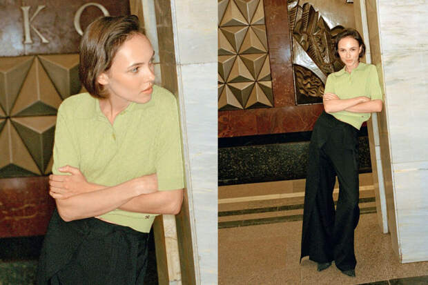 Актриса Стася Милославская в трикотажном поло и широких брюках снялась в метро для российского глянцевого журнала "Москвичка". Фото "Газете.Ru" предоставила пресс-служба издания.