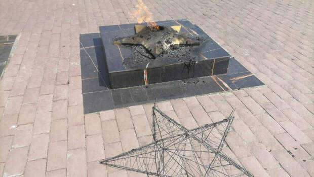 Ночью неизвестный мужчина шел мимо памятника и бросил лежащий рядом с мемориалом венок в горящий Вечный огонь. После этого пошатывающийся мужчина отошел от памятника и скрылся.