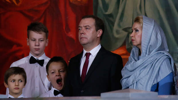 Премьер-министр России Дмитрий Медведев и его жена Светлана традиционно встретили Рождество в храме Христа Спасителя. Об этом сообщает РИА "Новости".