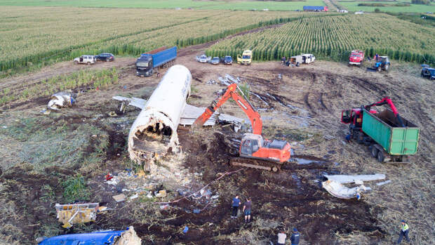 В Раменском районе Московской области завершился демонтаж пассажирского самолета A321 "Уральских авиалиний", который совершил экстренную посадку на кукурузном поле. Как сообщалось ранее, в пятницу, 23 августа, специалисты приступили к разрезанию корпуса Airbus A321 "Уральских авиалиний".