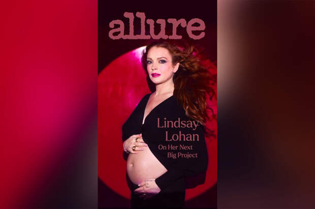 36-летняя Линдси Лохан позировала фотографу Бену Хассетту в черном платье Saint Laurent, оголившем ее округлившийся живот.