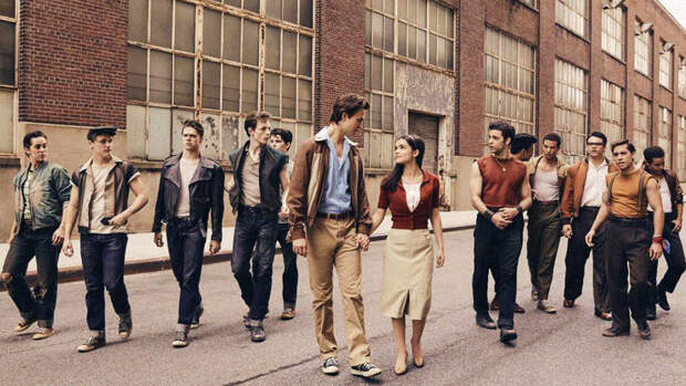 На снимке можно разглядеть артистов, которые сыграют членов уличных банд "Джеты" и "Акулы". Действие фильма, как и в оригинальном бродвейском мюзикле, разворачивается в 1957 году в Нью-Йорке.