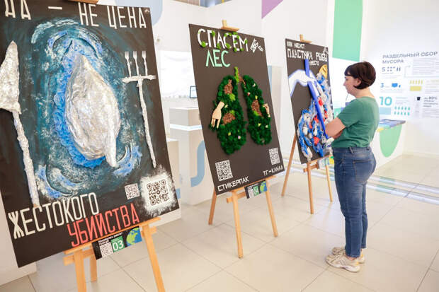 В выставку вошло 13 работ студентов "Колледжа Архитектуры, Дизайна и Реинжиниринга № 26", сделанных совместно с единым региональным оператором Москвы АО "Экотехпром".