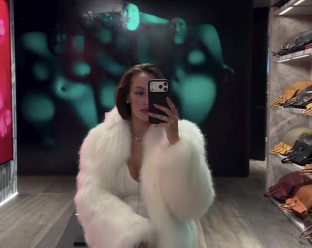 Валентина Иванова предстала перед камерой в белом облегающем платье, которое дополнила укороченной шубой в тон, массивной цепью и бордовой сумкой. Модель была запечатлена с уложенными волосами и макияжем в естественном стиле.