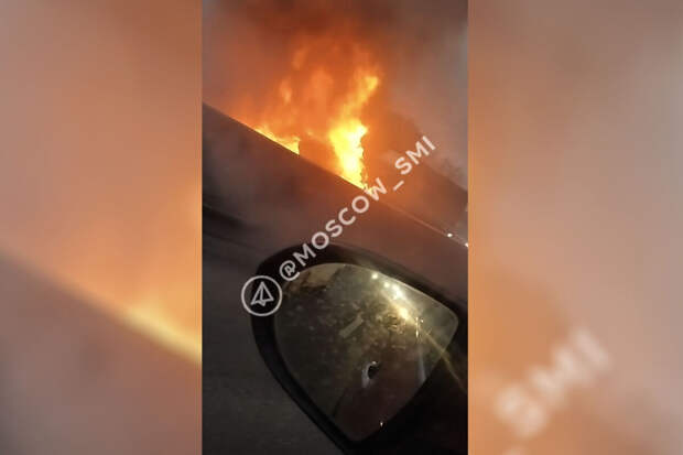 На записи также заметно. что из-за возгорания движение транспорта затруднено: образовался автомобильный затор.По данным канала, на месте работали оперативные службы города. Информация о пострадавших уточняется.