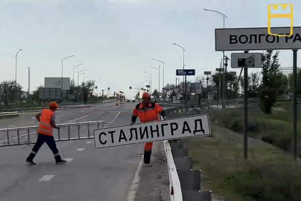 Дорожные знаки с надписью "Волгоград" временно заменили на "Сталинград" на всех основных въездах в город. Об этом сообщается в Telegram-канале местной администрации.