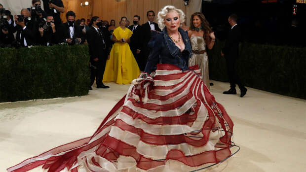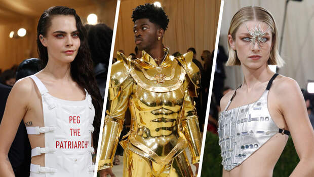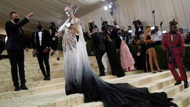 На Met Gala не бывает такого, чтобы кто-то не пришел в экстравагантных нарядах, которые будут вспоминать годами. В 2021-м публике запомнятся, скорее всего, немецкая певица Ким Петрас в образе лошади Collina Strada, Ким Кардашьян в черном луке Balenciaga, полностью закрывающей лицо маске и с "Канье" в качестве спутника, который на самом деле был креативным директором бренда Демны Гвасалия. Не мог пройти незамеченным и рэпер Lil Nas X в королевской мантии и рыцарских доспехах Versace.