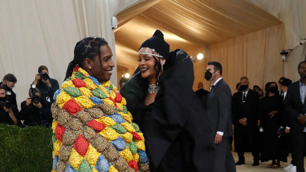 Отдельно выступили рэпер ASAP Rocky и певица Рианна. Костюм исполнителя, созданный брендом ERL, отсылал к американской классике - лоскутному одеялу, которое было распространено в обиходе колонизаторов второй половины XVII века. Рианна, появления которой с нетерпением ждали фанаты, появилась в черном кутюрном наряде Balenciaga.