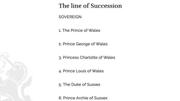 Ранее они фигурировали на странице линии преемственности как мастер Арчи Маунтбеттен-Виндзор и мисс Лилибет Маунтбеттен-Виндзор, а с сегодняшнего дня указаны на сайте как принц Арчи Сассекский и принцесса Лилибет Сассекская.Впервые Меган Маркл и принц Гарри объявили о новом титуле в сообщении о крещении дочери.