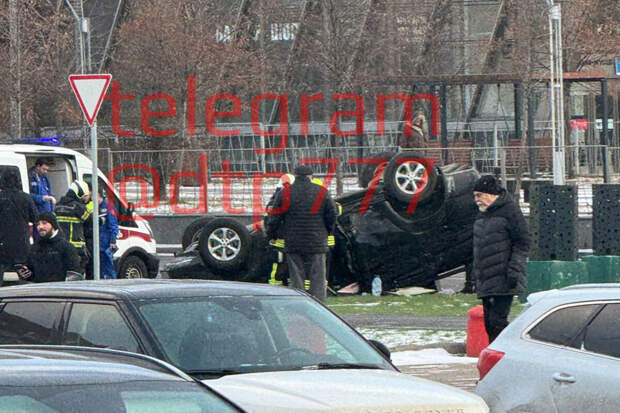В Москве черный автомобиль с водителем перевернулся в момент ДТП. Об этом сообщает Telegram-канал "ДТП и ЧП Москва и МО".
