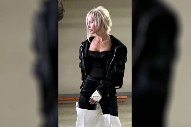 39-летняя Глюкоза предстала перед камерой в черном полупрозрачном топе, который дополнила кожаной курткой, короткими шортами и колготками. Певица завершила образ белыми ботфортами.