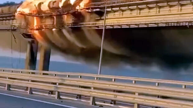 Причиной ЧП на Крымском мосту был подрыв грузового автомобиля, сообщили в Национальном антитеррористическом комитете. Взрыв привел к возгоранию семи топливных цистерн железнодорожного состава. Два автомобильных пролета моста частично обрушены, движение машин и поездов остановлено. Ведутся аварийные работы, билеты на ближайшие поезда и автобусы в Симферополь и в обратном направлении не продаются.