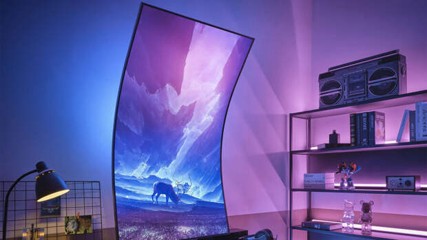 Диагональ Odyssey Ark составила 55 дюймов, а разрешение 3840х2160 пикселей. Максимальная частота обновления экрана — 165 Гц, а время отклика - 1 мс.