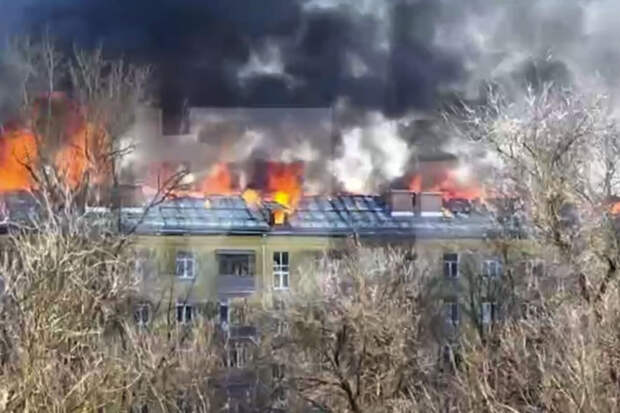 "На момент прибытия первых пожарно-спасательных подразделений наблюдался черный дым с чердачного помещения пятиэтажного жилого дома", - сказано в сообщении.
