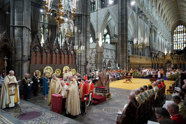 В конце церемонии король получил державу, скипетр и, наконец, корону Святого Эдуарда, которую водрузили на его голову.
