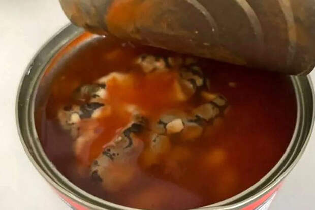 Британка купила в магазине консервированную фасоль и нашла внутри банки змею, пишет Daily Star. Представители супермаркета не знают, каким образом рептилия попала туда.