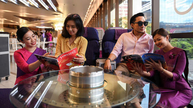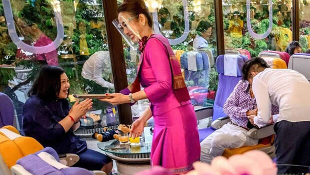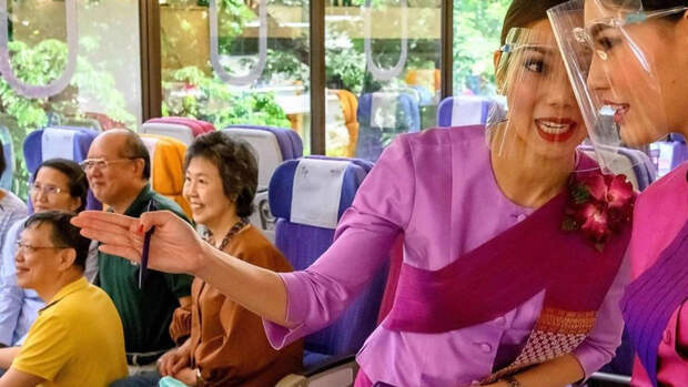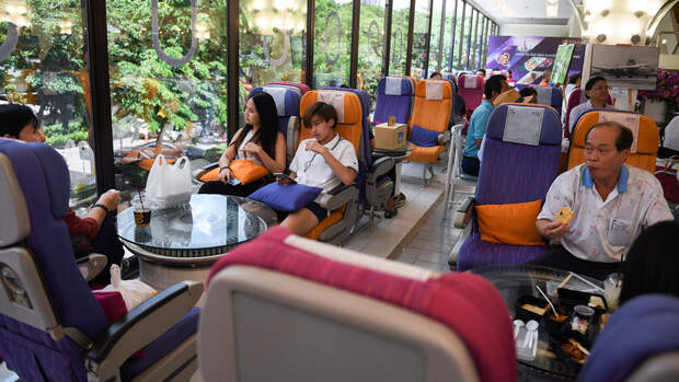 В Таиланде, из-за пандемии открывшем границы лишь с несколькими странами, придумали утешение для тех, кто тоскует по путешествиям. Здесь открываются кафе, где подают еду из самолетов — гости поедают ее, сидя в креслах первого или бизнес-класса, вооружившись посадочными талонами. Меню "бортового питания" — соответствующее, так что те, кто в нормальной жизни может себе позволить только билет в эконом-класс, могут получить весь спектр ощущений от полета по высшему разряду — с официантами в костюмах бортпроводников (например, национальной авиакомпании Thai Airways) и блюдами вроде жареной говядины в тайском стиле или спагетти карбонара.