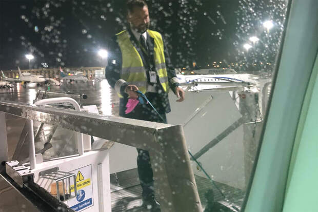 В этот раз самолет вынужденно приземлился в Севилье из-за урагана. В ожидании разрешения на взлет проводники запретили пассажирам покидать салон.