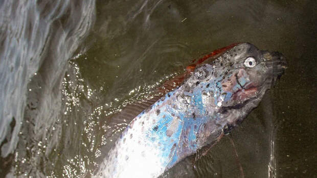 Кертис Петерсон, капитан прогулочного судна Tiwi Islands Adventures, опубликовал фото трехметровой рыбы. Он позирует вместе с одним из участников круиза. На снимке видно это существо с длинным узким телом, головой, напоминающей лошадиную, и огромными глазами.
