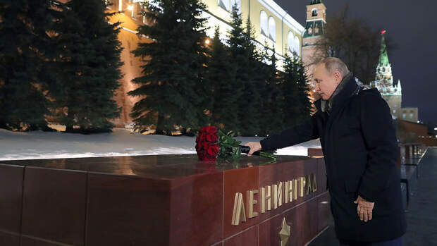 Президент России Владимир Путин в 77-ю годовщину полного освобождения Ленинграда от блокады возложил цветы к обелиску города в Александровском саду в Москве.