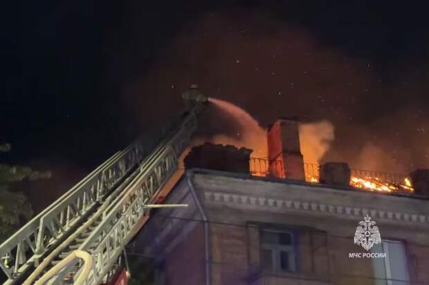 Они ликвидировали возгорание. На видео МЧС видно, что горела крыша дома.В ночь на 13 октября в городе Алчевск ЛНР загорелся девятиэтажный дом на улице Гмыри. Пожар произошел в квартире на седьмом этаже, а квартиры на восьмом и девятом этажах, чердачное перекрытие и крыша обрушились. Спасатели эвакуировали жителей дома.