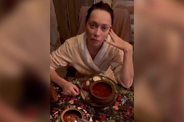 37-летняя Настасья Самбурская была запечатлена в халате в банном комплексе. Актриса позировала с собранными в пучок волосами и без косметики. Звезда сидела за столом, где стояла тарелка борща.