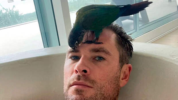 Австралийский актер Крис Хемсворт, известный ролью Тора в киновселенной Marvel, снялся в ванне с попугаем на голове. Соответствующий снимок опубликовала в социальных сетях его супруга, испанская актриса и модель Эльза Патаки.
