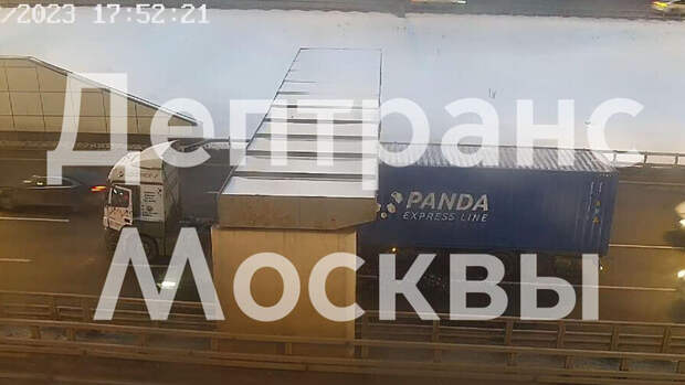 На проспекте Маршала Жукова в Москве большегрузный автомобиль застрял под ограничительной рамкой, сообщается в Telegram-канале "Дептранс. Оперативно".