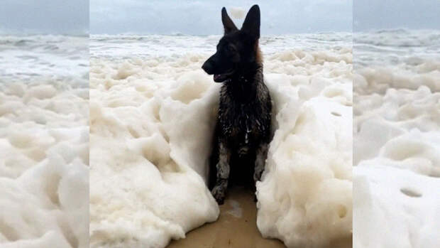 Овчарку накрывает морской пеной, а она радостно прыгает и не торопится выбираться из воды.Стоит отметить, что это видео вызвало отклик у пользователей. Многие стали писать, что они влюбились в овчарку и им интересно узнать продолжение истории ее купания в океане.