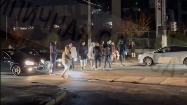 Люди стали часто передвигаться по пешеходному переходу. К месту подъехала полиция.