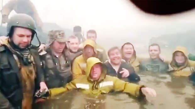 На нем видно, что лес активно горит. Вокруг водоема густой дым. Десантники сообщили на камеру, что "чуть не сдохли" две минуты назад, но выжили.