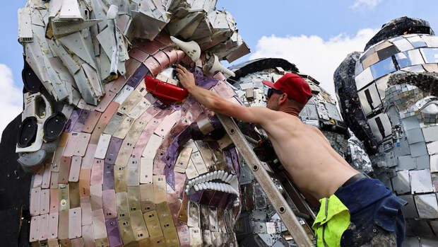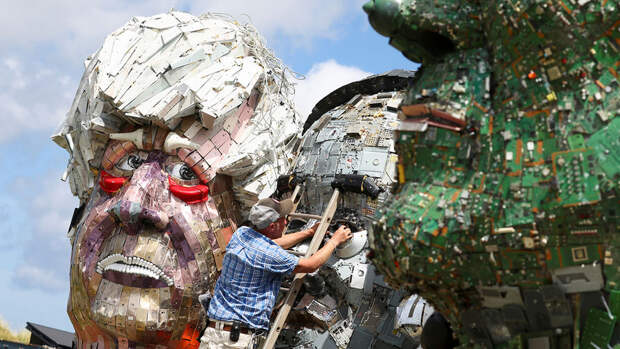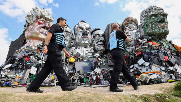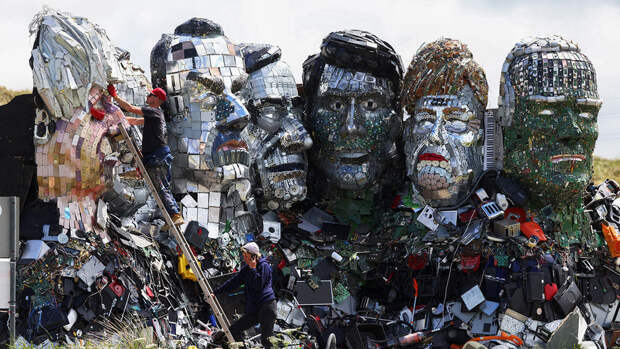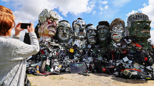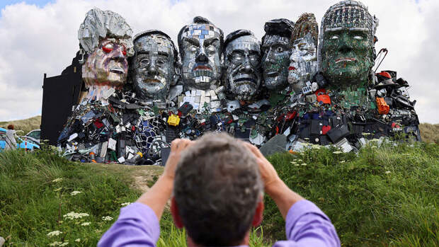 Каждый политик на инсталляции сделан из разных запчастей: если лицо Борис Джонсона выполнено из корпусов смартфонов, то Джо Байден напротив, сконструирован из микросхем.Автор скульптуры Джо Раш заявил, что его произведение должно привлечь внимание лидеров саммита к проблеме утилизации электронных отходов и их переработки. По его мнению, электроприборы необходимо ремонтировать, либо производить качественную продукцию, которая будет служить долго.