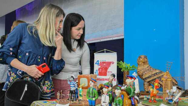 С экспозициями ознакомился временно исполняющий обязанности главы ЛНР Леонид Пасечник. Представители территорий вручили ему памятные подарки, одним из которых стал "цветок войны", сделанный из осколков украинских снарядов, выпущенных ВСУ по городу Первомайску.