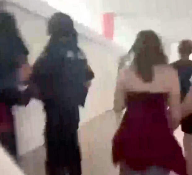 На видео можно увидеть, как полицейские выводят школьников из учебного заведения.