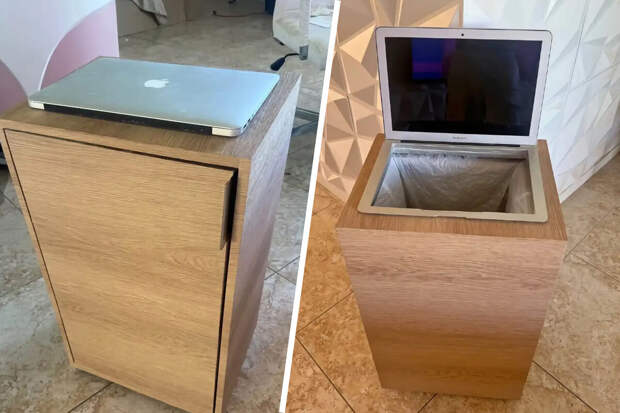 Необычный предмет для утилизации мусора появился в продаже на Facebook Marketplace — мусорное ведро со встроенным в крышку корпусом MacBook Air. Приспособление позволяет открывать контейнер подъемом экрана ноутбука, а область клавиатуры и тачпада образует удобное отверстие для выбрасывания отходов. На необычный лот обратила внимание редакция издания Macworld.