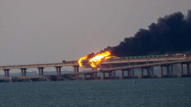 По данным НАК, это произошло в 06.07 утра 8 октября на автомобильной части моста со стороны Таманского полуострова. Подрыв привел к возгоранию семи топливных цистерн железнодорожного состава, заявили в комитете.