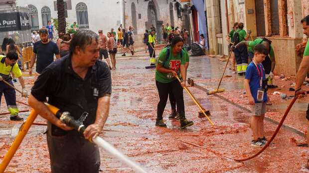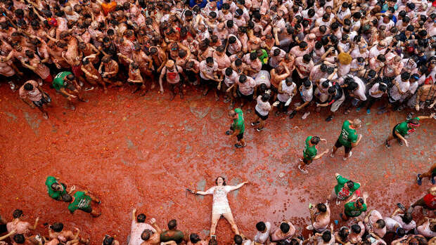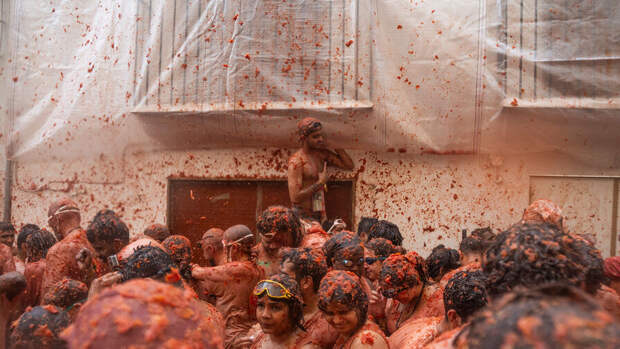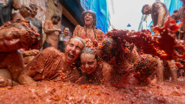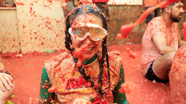 В небольшом испанском городе Буньоле каждый год в последнюю среду августа проходит грандиозная битва томатами La Tomatina.