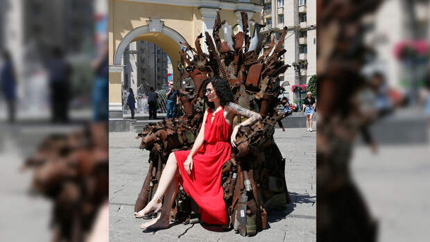 На Майдане Незалежности Киева появился арт-объект "Железный трон" из обломков военной техники из Донбасса, передает РИА "Новости".