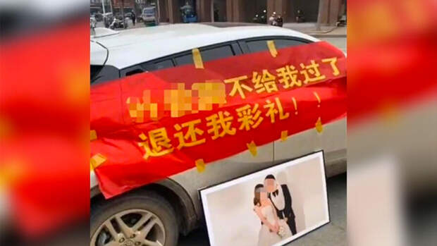 Чтобы заставить женщину выполнить его требования, китаец повесил плакат на свою машину, подъехал к ее дому и начал кричать в громкоговоритель."Еще мы хотим вернуть драгоценности, которые и моя семья купили ей, еще часть денег она должна отдать наличными", - считает Хоу.