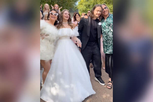 Королева заявила, что ярко и отлично провела супружескую жизнь с Глушко. По словам исполнительницы, теперь она передает свадебную эстафету молодым. Она показала сына с возлюбленной в торжественных нарядах. В ролике знаменитость целует в щеку невестку, а Глушко обнимается с сыном. Под крики "горько" молодожены целуются.