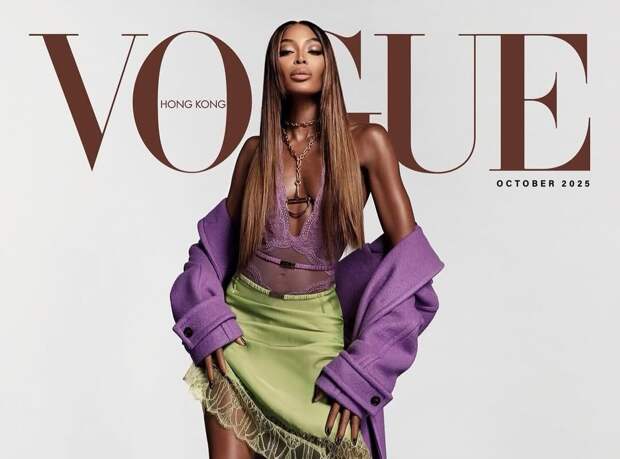 55-летняя Наоми Кэмпбелл стала героиней нового выпуска журнала Vogue Hong Kong. На обложке супермодель предстала в фиолетовом полупрозрачном кружевном боди с декольте, которое дополнила длинным пальто в тон и шелковой зеленой юбкой.