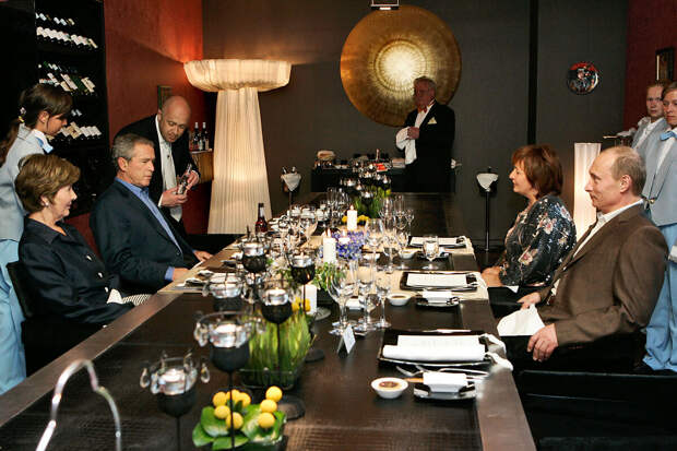 Business Insider отмечает, что на фотографии, датированной 14 июля 2006 года, запечатлен момент ужина Джорджа Буша и его жены Лоры Буш с Пригожиным и Путиным в Константиновском дворце во время 32-го саммита G20.