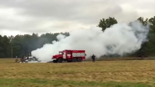На видео засняты первые моменты с момента крушения истребителя - в частности, видно, как горят обломки самолета. Также в кадр попали пожарные и сотрудники скорой помощи, которые работали на месте происшествия.
