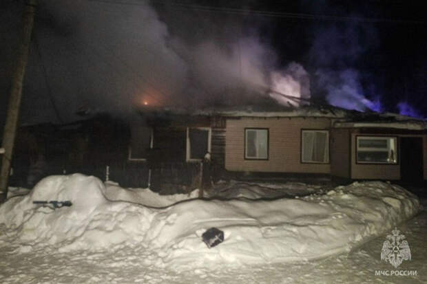 "Загорелся многоквартирный жилой дом барачного типа на улице Свердлова. К моменту прибытия огнеборцев происходило горение кровли дома и квартиры открытым пламенем", — пояснили в ведомстве.