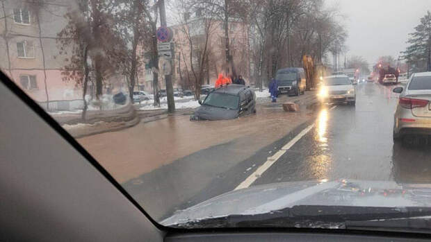 Авария произошла на улице Мориса Тореза. Водитель на внедорожнике Chevrolet Niva хотел проехать по луже на дороге, но автомобиль угодил в яму. Причем под воду погрузился весь моторный отсек машины. Судя по всему, провал в асфальте образовался недавно, так как вокруг нет никаких предупреждающих знаков и ограждений.