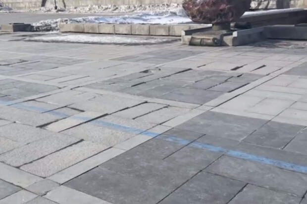 При этом канал отмечает, что плитка также оказалась разрушена в местах, где техника ездить не может - на лестницах и вдоль заборов.