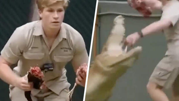 Молодой натуралист, ведущий шоу Crikey! It's The Irwins Роберт Ирвин оказался в опасной ситуации, когда кормил крокодилов в Австралийском зоопарке.