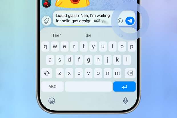 Главное изменение — переработанный дизайн приложения для iOS с эффектом "жидкого стекла". Полупрозрачные элементы появились в панели навигации, на клавиатуре, в меню стикеров и других интерфейсных блоках, придавая приложению визуальную глубину и плавность.