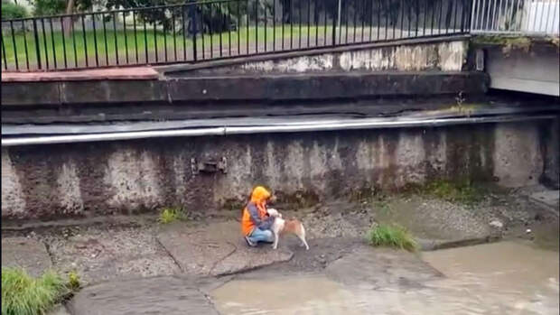 Животное не могло самостоятельно выбраться из русла реки, напуганную собаку заметили двое молодых людей, они поспешили ей на помощь, сообщает kp.ru.