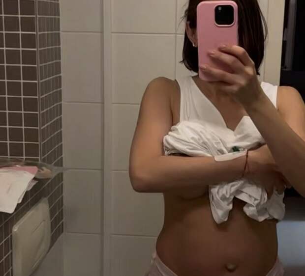 Валентина Иванова стояла перед зеркалом в трусах и приподнятой ночнушке, показав живот. Девушка рассказала, что видео было снято спустя день после рождения дочери.
